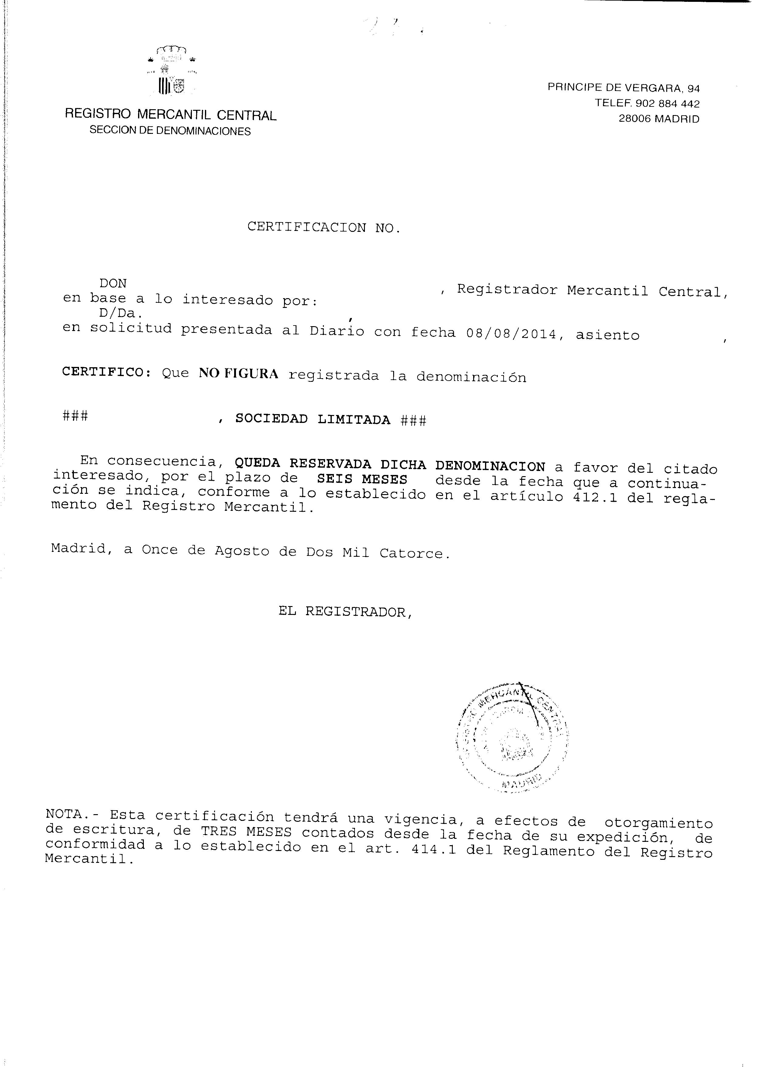 Aqui podemos ver un ejemplo de Certificación de Nombre de Sociedad: